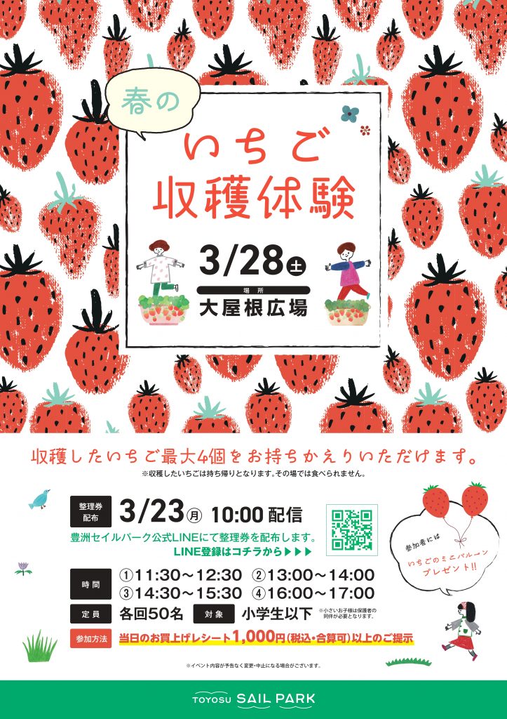 豊洲セイルパークの公式LINEをご登録のうえ、ご希望の時間帯の整理券を取得ください。