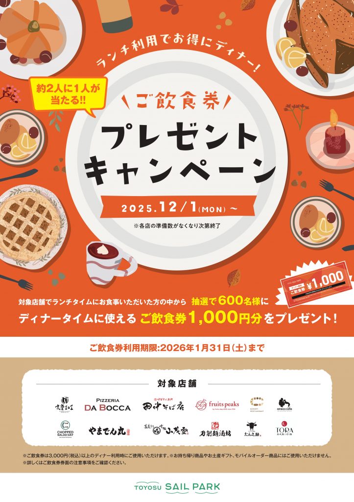 抽選で600名様にディナータイムに使えるご飲食券1,000円分をプレゼント!