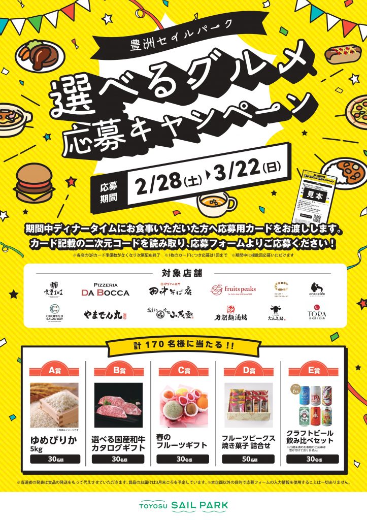 期間中ディナータイムにお食事いただいた方へ応募用カードをお渡しします。